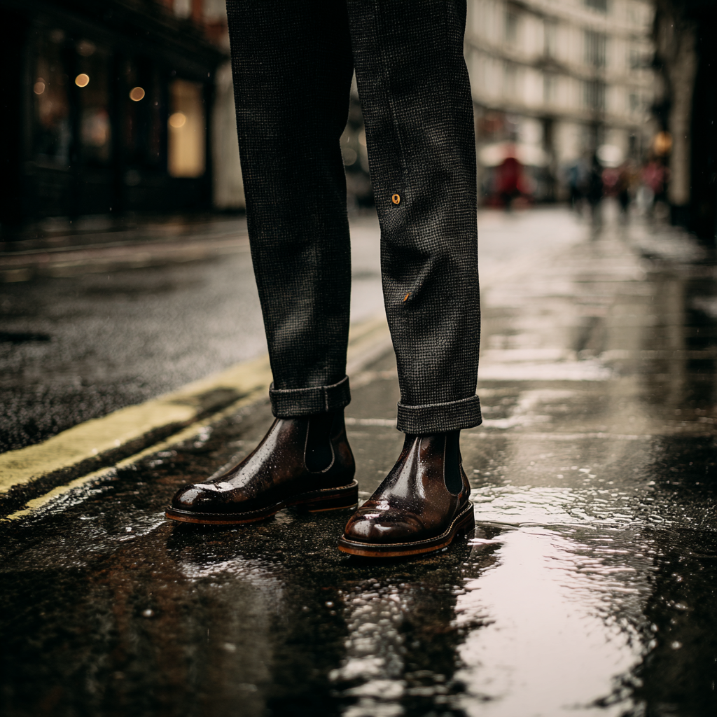 しかし英国的なブーツは、ただ粗野なだけではない。そこには、実用の中に洗練を残そうとする感覚がある。特にチェルシーブーツのような存在は、その典型だ。ブーツでありながら細身で、反骨心をにおわせながら、どこか都会的でもある。