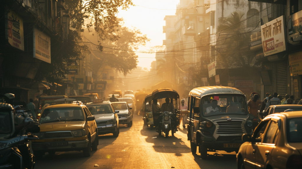 インド人、牛、人力車、車、バス。すべてが同じ平面に存在し、誰も完全には優先されず、それでも奇妙な秩序で流れていく。