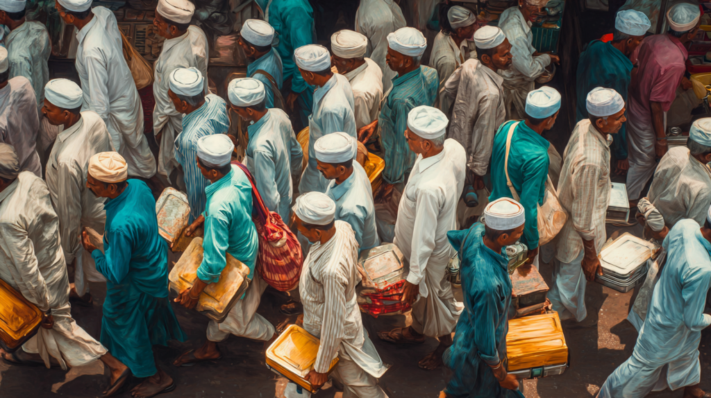 ムンバイのダッバーワーラーが荷物を運ぶ様子(人間アルゴリズムと都市の秩序)