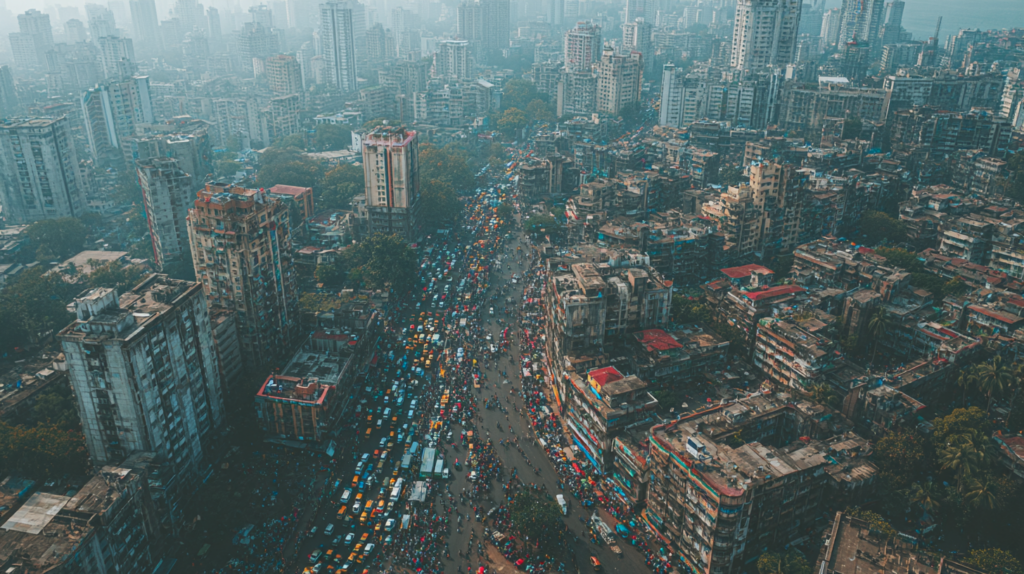ムンバイの都市全景と交通渋滞(高密度都市と人間アルゴリズム)