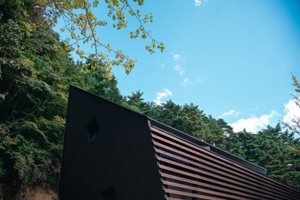 そこには、建築が自然を抱き込み、木が建築に居場所を得るという“共創のかたち”がある。