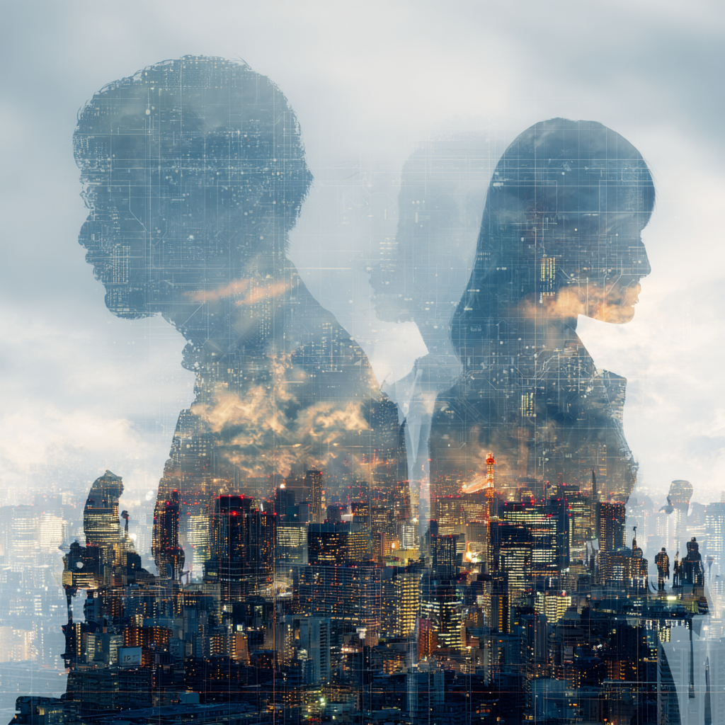 その三つのレイヤーが重なり合う場所に、「偶発性が未来をつくる都市」──福岡がある。Podcast風の構成とAIビジュアルでは、この“編集都市”のダイナミズムを、詩と構造のあいだで描き出した。