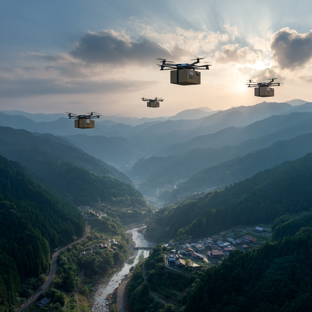 ひろしまサンドボックスで進む中山間地域の新しい物流インフラのイメージ。