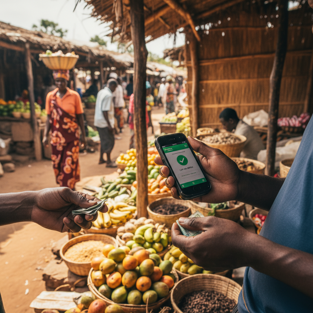電力が安定しない地域でも、モバイルマネーは普及している。 銀行網を飛ばし、デジタル金融が先に広がった。