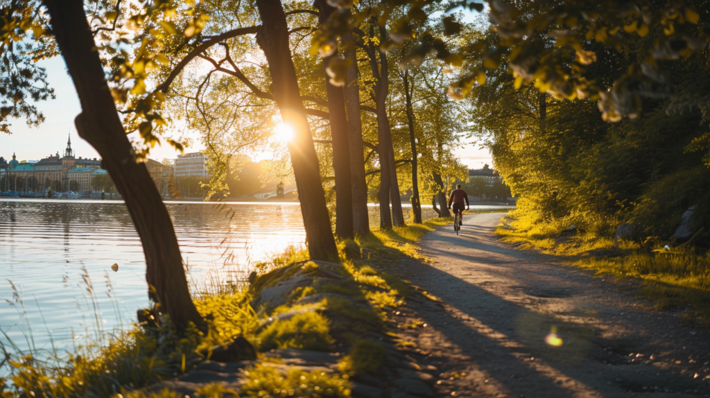 森は旅行先ではなく生活の背景、湖は週末の目的地ではなく帰路の呼吸になる。歩行者と自転車を優先し、公共交通の接続精度を上げ、水辺と緑へのアクセスを当たり前にする。さらに、廃熱でバスを動かし、落葉は土へ戻る―循環を“体験”にすることで、行動が静かに変わる。